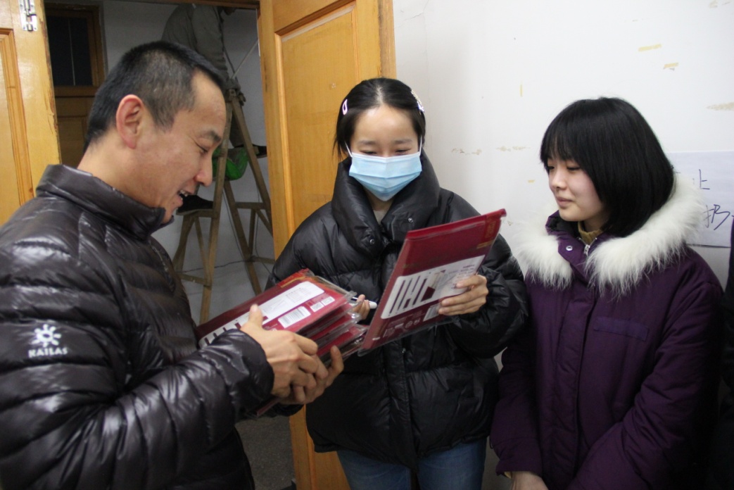 学院领导和学工办老师们将“考研大礼包”发放到每一名考研学子手上。小小的礼包里装满了学院老师对考研学子的满满关怀。在收到“大礼包”后,同学们纷纷表示“马上就要考试了,压力很大,收到这样一份礼物,很感动,能感觉到暖暖的爱意,自己会迎难而上,努力实现自己的梦想,用优异的成绩回报学校、学院培养。”