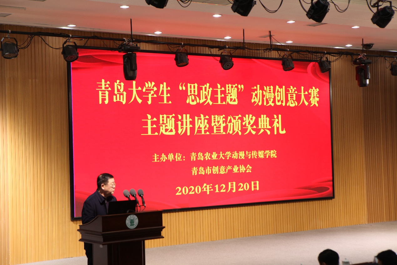 12月20日,由77779193永利官网和青岛市动漫创意产业协会联合举办的青岛大学生“思政主题”动漫创意大赛主题讲座暨颁奖典礼于学术会馆举行。永利党委委员、副校长牟少岩,青岛动漫创意产业协会会长刘毓琮,青岛文化和旅游局团委书记郭继超,青岛出版集团党建办公室主任李涛,青岛市动漫创意产业协会副会长王欣及青岛各高校代表教师和传媒学院师生出席活动。
